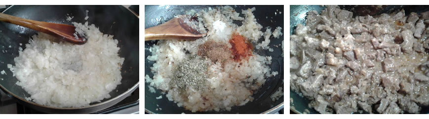 Paso 1: Sofreír la cebolla, colocar una cuchara de azúcar y sofreír hasta que la cebolla este cristalina. El azúcar sirve para suavizar la cebolla o no provoque molestias posteriormente.
