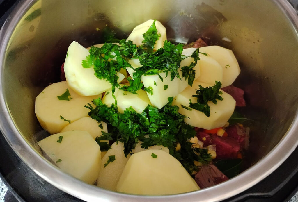 2. Agregando las papas al tomaticán